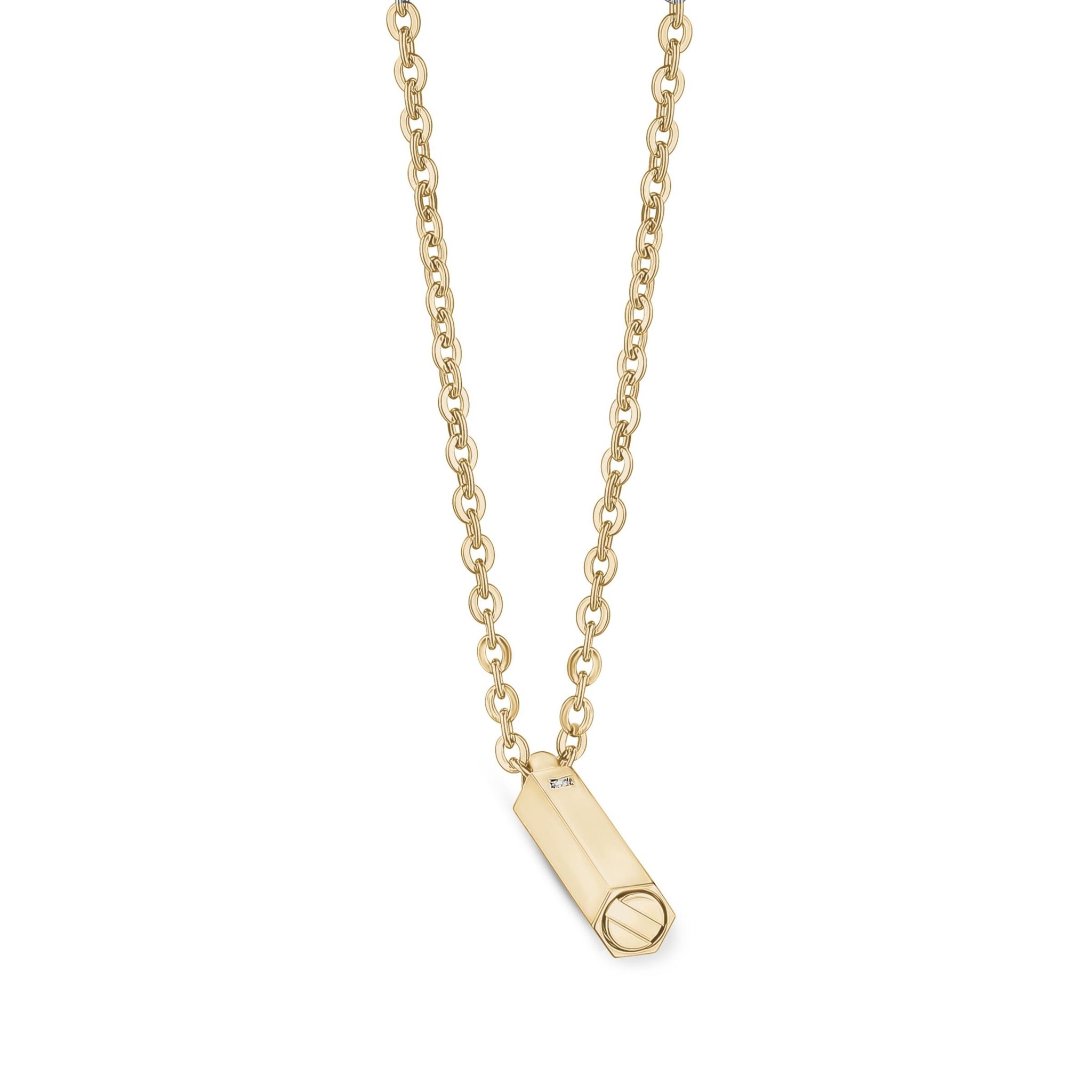 Stainless steel ashes necklace, hexagon with cubic zirconia accent on a 24" 3mm chain.