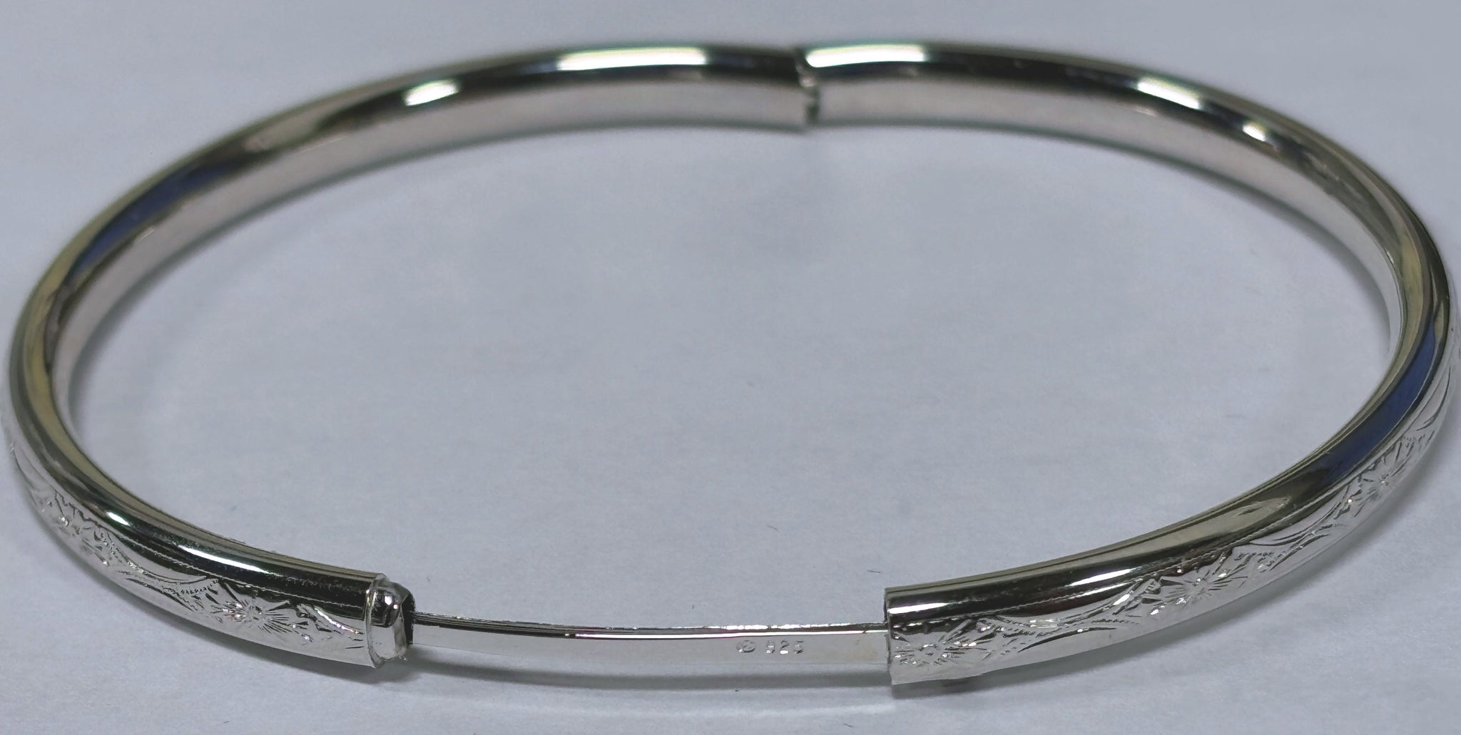 Sterling silver bangle bracelet. It can be engraved on the inside.
