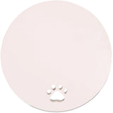 10" garden memorial stone with paw print-shaped cut-out made from polyresin stone. Suitable for either indoor or outdoor use.