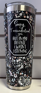 PURE - 22oz Tumbler - "Sorry, I misunderstood you, but in my defense I wasn't listening"